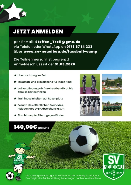 ANMELDEFORMULAR Fußball-Feriencamp des SV Neueibau